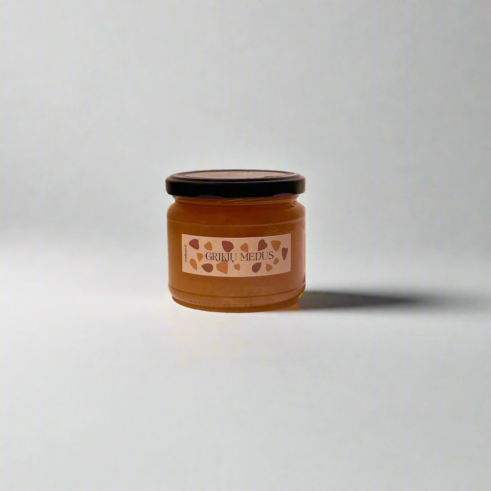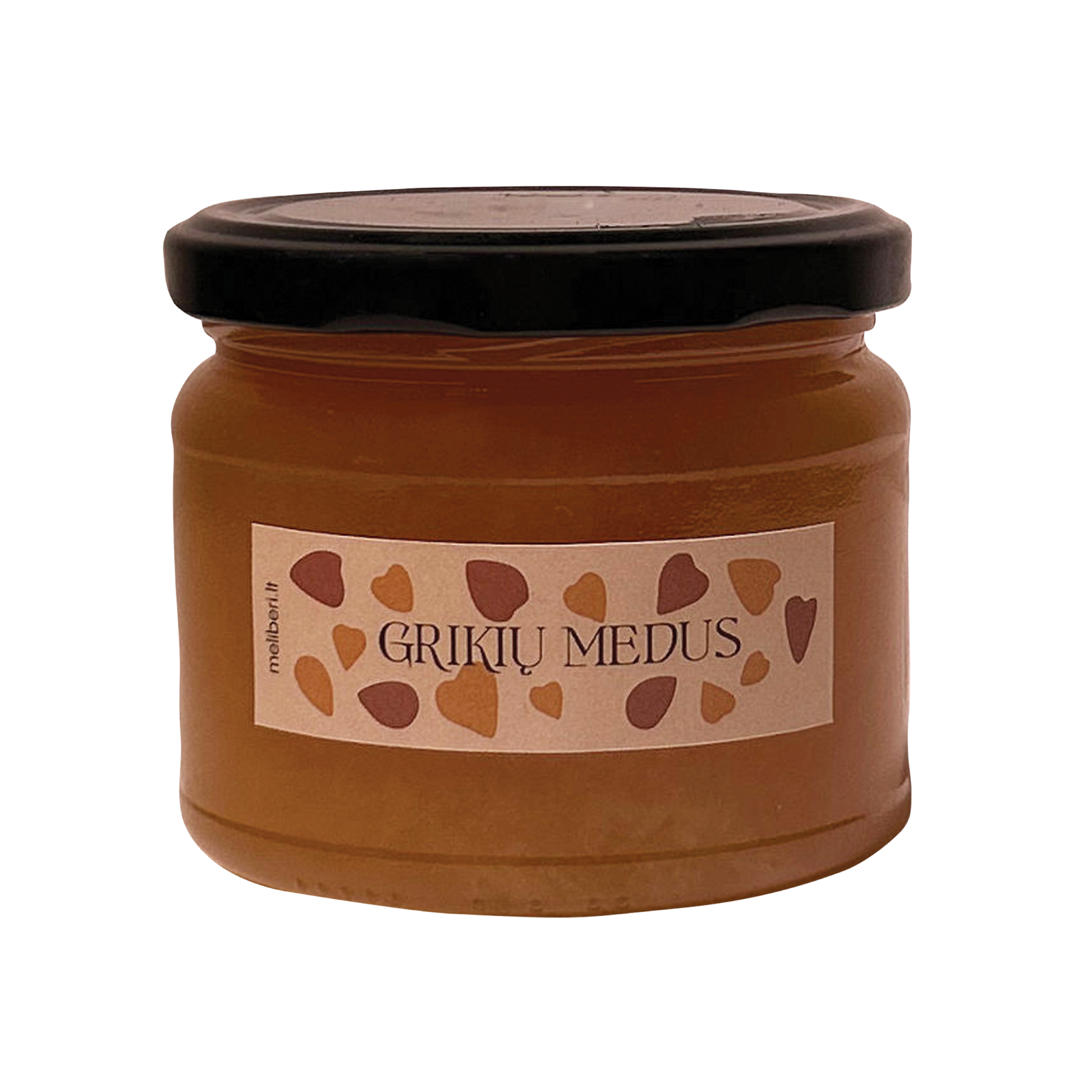 Grikių medus - tai vienas iš labiausiai išsiskiriančių ir lengvai atpažįstamų medaus rūšių. Jis renkamas iš žydinčių grikių laukų, kurie vasaros pabaigoje pasipuošia sodriai baltomis ir rausvomis žiedų bangomis. Medaus spalva tamsi - nuo sodriai gintarinės iki beveik rudos, kartais su rausvu atspalviu. Šis medus iš karto traukia dėmesį savo išraiškingu aromatu, primenančiu grikių žiedus ir net šiek tiek skrudintų grūdų natų.