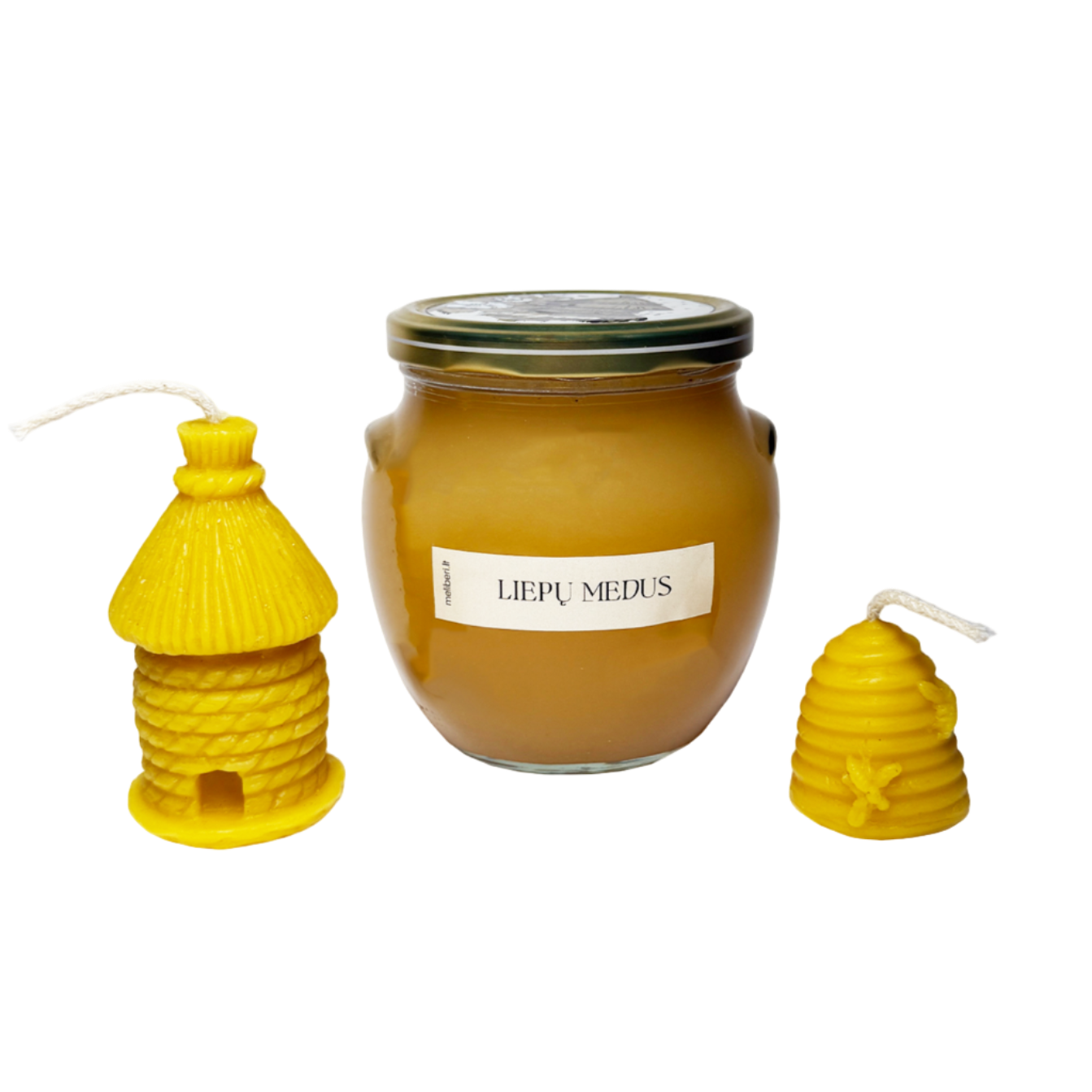 Sudėtis: 700g liepų medaus ir 2vnt rankų darbo bičių vaško žvakių rinkinys