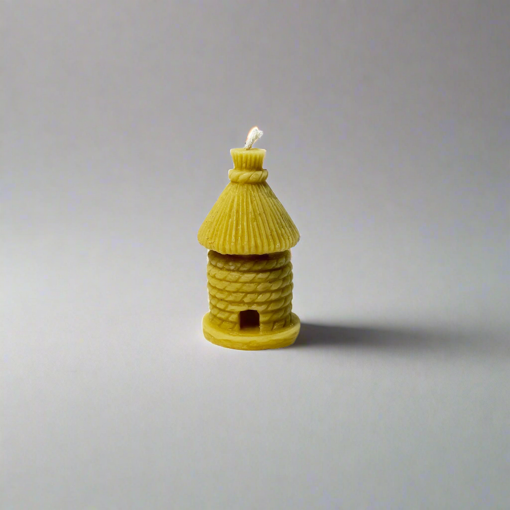 Išskirtinumas: rankų darbo žvakė, išlieta avilio formos su šiaudiniu stogu - primena senovinius tradicinius avilius. Degdama skleidžia subtilų medaus kvapą, valo orą ir kuria jaukią, natūralią atmosferą namuose.